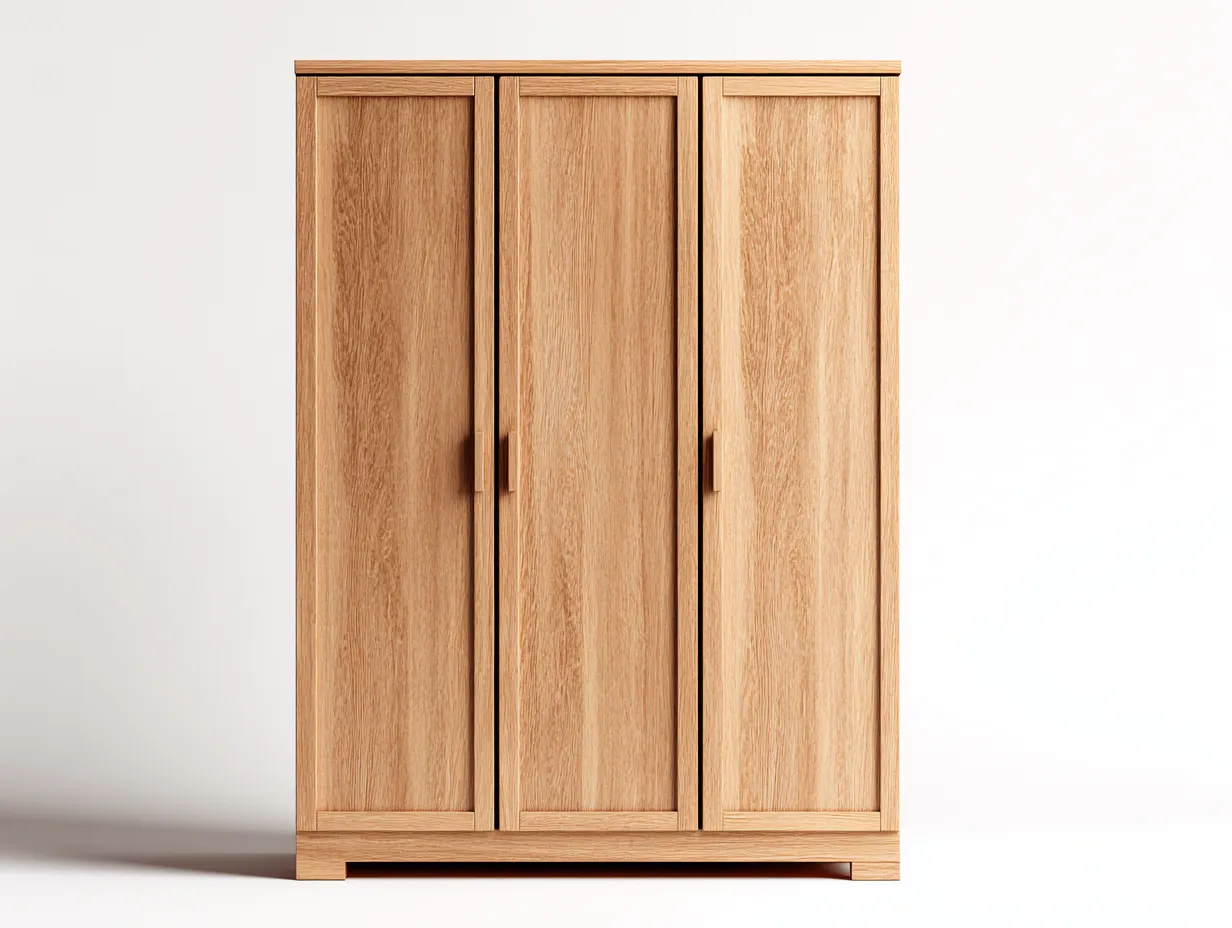 Die drei Türen ermöglichen einen übersichtlichen Zugriff auf den Innenraum und erleichtern die Organisation von Kleidung. Der großzügige Stauraum unterstützt eine strukturierte Aufbewahrung von Alltagsgegenständen und sorgt für Ordnung im Schlafzimmer. Die klare Formgebung passt besonders gut zu modernen Wohnkonzepten.